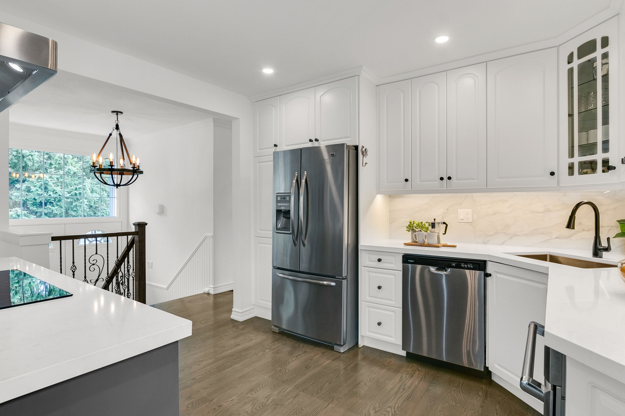Downstairs, the finished lower level offers two more bedrooms, a rec room, updated bathroom, and laundry. A rough-in for a second kitchen and separate walkout entrance provide in-law suite or rental potential. With plumbing access available in both the laundry room and the mudroom off the garage, there is strong potential to convert the basement into a fully separate apartment.